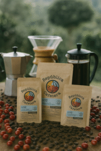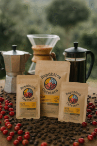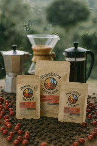 En República Cafetera celebramos la riqueza de la cultura cafetera de Colombia. Nuestro país es reconocido internacionalmente por la suavidad y el sabor único de su café, producto de un cuidado cultivo en montañas con altitudes entre 1.200 y 1.800 metros y un clima templado de 18 °C a 24 °C.
